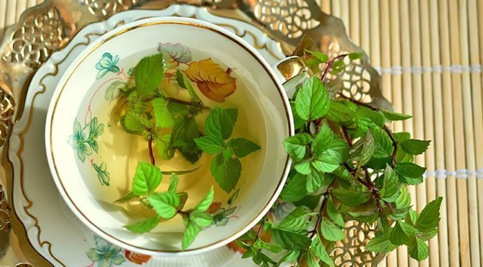 - Adicione a água e a hortelã numa panela e leve para ferver por 5 minutos.